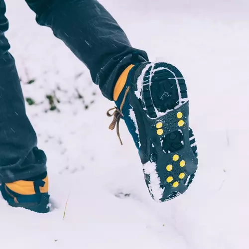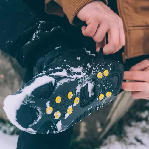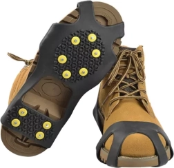Tyto lehké a odolné návleky z pružného TPE se snadno navlékají přes špičku a patu boty a díky kovovým hrotům zajišťují spolehlivý záběr na ledu, sněhu i rozbředlém blátě. Každý návlek má 10 strategicky rozmístěných hrotů, které zvyšují stabilitu a snižují riziko uklouznutí.