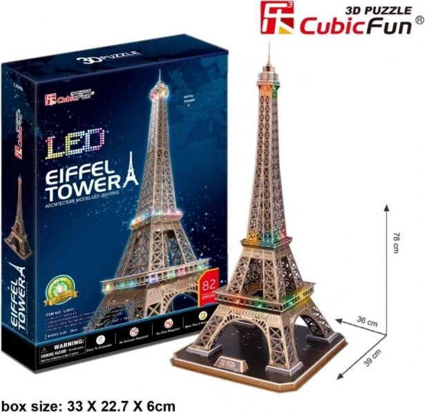 Postavte si domů ikonickou eiffelovu věž jako 3D puzzle z edice CUBICFUN s LED osvětlením. Díly z kvalitní pěny potažené papírem snadno složíte bez lepidla a nůžek, výsledný model vynikne jako stylová dekorace s impozantní výškou 78 cm.
