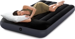 Tato nafukovací matrace ve velikosti Standard Twin (99 × 191 × 25 cm) je ideálním řešením pro dočasné spaní doma i na cestách. Horní měkčený semišový povrch je příjemný na dotek a pomáhá udržet prostěradlo na místě, zatímco zvýšený podhlavník poskytuje přirozenou oporu hlavy a krku.