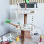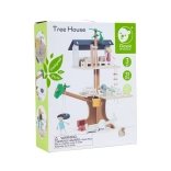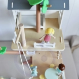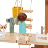 Balení obsahuje 31 prvků včetně 2 dětských figurek, 2 zvířátek a doplňků jako houpačka, houpačka–pneumatika, houpačka–rovnováha, postel, stůl, židle a truhla s pokladem. Pečlivě opracované přírodní dřevo s jemnými barvami je odolné a příjemné na dotek.