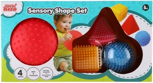 Sada senzorických geometrických tvarů LITTLE HERO nadchne každé zvídavé dítě. Různorodé povrchy a výrazné barvy podněcují smyslové vnímání, zatímco ježatá struktura usnadňuje úchop i těm nejmenším ručkám. Při manipulaci s jednotlivými tvary si děti přirozeně trénují koordinaci ruka–oko a učí se rozpoznávat rozdíly mezi tvary a barvami.
