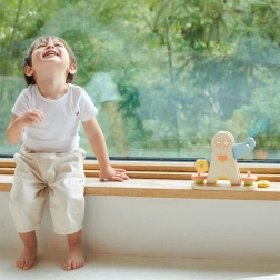Hračka je vyrobena z kvalitního přírodního dřeva s hladkými hranami a barvami na vodní bázi. Pastelové prvky jsou pro děti lákavé a zároveň nadčasové.