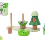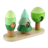 Sestavte tři krásné zelené stromy z 16 dřevěných dílků. Děti mohou kombinovat tvary i pořadí a vytvářet vlastní varianty lesa.