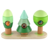 Tato roztomilá lesní skládanka přináší dětem radost z objevování tvarů, barev a jednoduchých principů skládání. Z jednotlivých dílků vznikají tři zelené stromy a každý z nich ukrývá jiné zvířátko – sovu, datla a veverku. Díky pevnému dřevu a příjemnému provedení se sadu snadno drží i nejmenším ručkám.