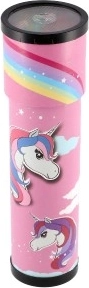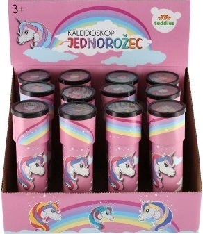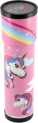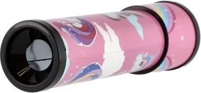Veselý růžový design s jednorožcem a duhou podporuje fantazii a z kaleidoskopu dělá oblíbenou hračku pro malé snílky.