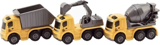 Zábavná plastová stavební autíčka na setrvačník potěší každého malého stavitele. V balení najdete 3 různé druhy vozidel o velikosti cca 10 cm, která se po natažení rychle rozjedou. Ideální jako originální dárek pro děti od 3 let.