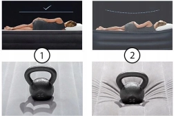 Integrovaná nožní pumpa umožňuje snadné nafouknutí bez elektřiny. Matrace lze zároveň dofouknout i běžnou pumpou přes ventil.