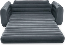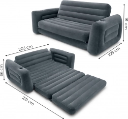 Velurová pohovka Intex s rozměry 231x203x66 cm je ideální pro dvě osoby. Vyrobena z odolného PVC materiálu, potažená hebkým velurem, snadno se defluje.
