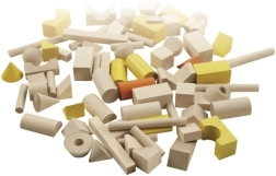 Dřevěné kostky Detoa jsou skvělou volbou pro děti, které milují tvořit a skládání. Tento set obsahuje různé tvary jako klasické krychle, kvádry, válce a netradiční tyčky, jehlany a další zajímavé tvary včetně některých provrtaných. Díky pestrým barvám a množství možností jsou tyto dílky perfektní pro rozvoj dětské kreativity a motoriky.