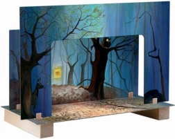 Vícevrstvé kulisy vytvářejí dojem hloubky, takže se příběhy z lesa odehrávají na opravdu působivém jevišti.