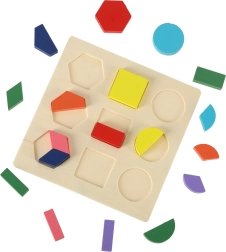 Tato skvělá dřevěná skládačka umožňuje dětem procvičovat si logické myšlení a rozpoznávání tvarů. Hra je založena na jednoduchém principu přizpůsobení tvarů do příslušných otvorů, což přispívá k rozvoji kognitivních schopností dítěte. Vhodné pro učení názvů barev a základů matematiky, protože skládačka zahrnuje různé tvary a barvy pro stimulaci vizuálních dovedností.