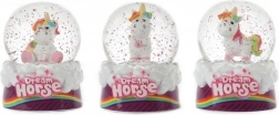 Sněhová koule/Těžítko jednorožec kůň 7cm 3 druhy v krabičce 11x13x11cm