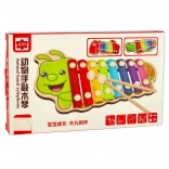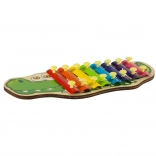 Xylofonky jsou vyrobené z kombinace dřeva a kovu. Stačí lehce klepnout paličkou do plátku a zazní čistý tón, jehož hlasitost závisí na síle úderu. Živé a teplé barvy navíc lákají ke hře a skvěle se hodí i k učení barev.