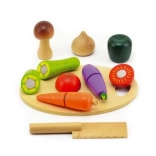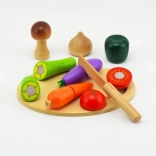 Tato dřevěná sada na krájení je perfektní hračkou pro malé kuchtíky. Obsahuje 16 realistických kusů zeleniny, které děti mohou krájet pomocí dřevěného nože a prkénka.
