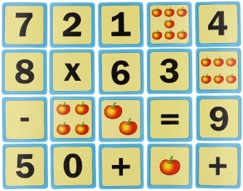 Speciální kartičky s čísly a matematickými symboly umožní skládat jednoduché příklady a trénovat logické uvažování.