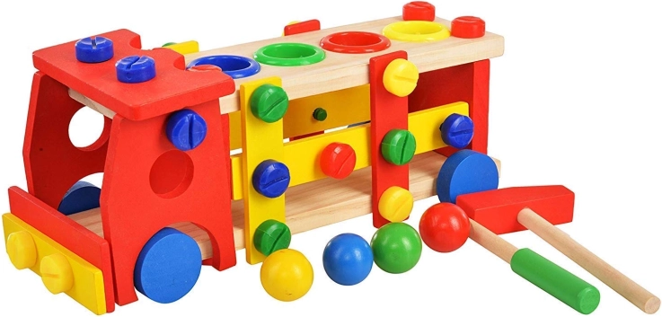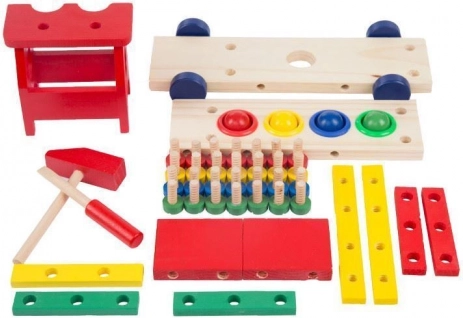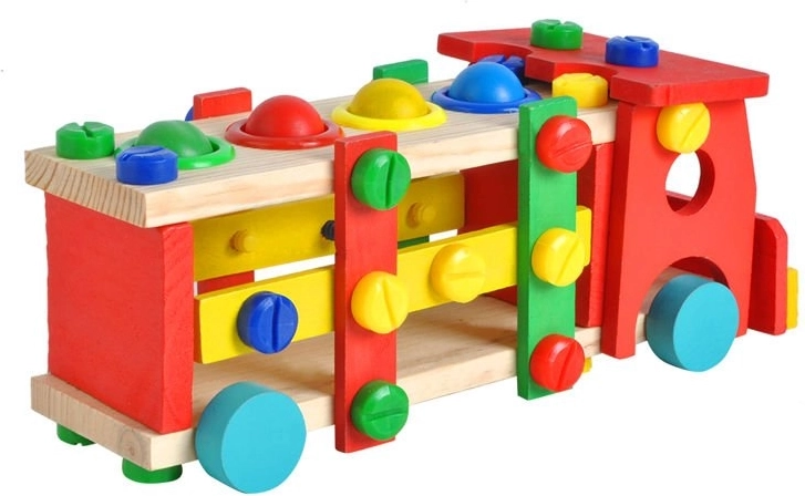 Vzdělávací a interaktivní hračka v podobě dřevěného autíčka rozvíjí motorické, poznávací schopnosti. Podporuje také kreativní stránku dítěte a soustředění.