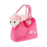 Tento půvabný set spojuje hračku a módní doplněk v jednom. Hebká růžová kabelka s oušky a srdíčkovými detaily ukrývá roztomilého pejska, který je připraven dělat společnost na každém výletě i při domácím hraní.