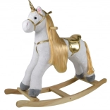 Objevte kouzlo hravého houpání s designovým bílo‑zlatým jednorožcem, který je nejen krásný na pohled, ale i plný interaktivní zábavy. Po stisknutí jednoho ouška jednorožec řehtá a pohybuje ocáskem, po stisknutí druhého ouška se ozve klapot podkov při klusu a znovu zavlaje ocásek. Hračka pomáhá dětem přirozeně trénovat rovnováhu a motoriku a podporuje fantazii.