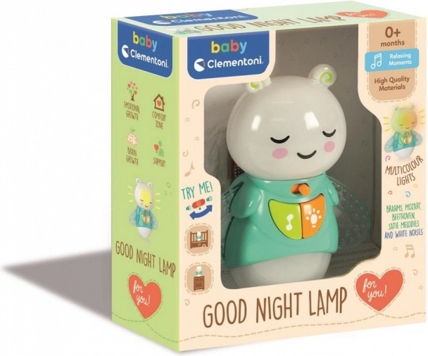 Roztomilá noční lampička BABY CLEMENTONI s motivem mušky přináší dětem klidné usínání a jemné, uklidňující osvětlení. Díky bezpečnému plastovému provedení a napájení na 3× AAA baterie je ideální do dětského pokoje i na cesty. Děti si ji zamilují jako věrného nočního společníka.