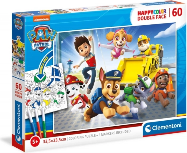 Zábavné a kreativní oboustranné puzzle pro děti od 3 let: z jedné strany barevná scéna s hrdiny PAW PATROL, z druhé strany omalovánka k vybarvení. Součástí jsou 3 barevné fixy pro okamžité tvoření. Kvalitní tisk zaručuje živé barvy a precizní dílky, které rozvíjí logické myšlení, jemnou motoriku a kreativitu.