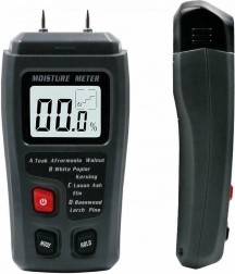Zařízení je lehké a odolné, napájené běžnou 9V baterií (není součástí balení). Nabízí automatické vypnutí po 15 minutách, indikaci slabé baterie a funkci HOLD pro pozastavení hodnoty. Díky 4 kalibračním skupinám dřevin dosahuje přesných výsledků u širokého spektra dřeva – od měkkého jehličnatého po tvrdé exotické.