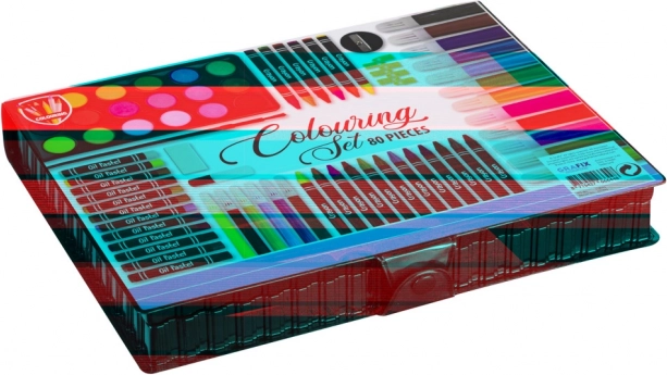 Všechny výtvarné potřeby jsou organizovány v praktickém a snadno přenosném boxu.
