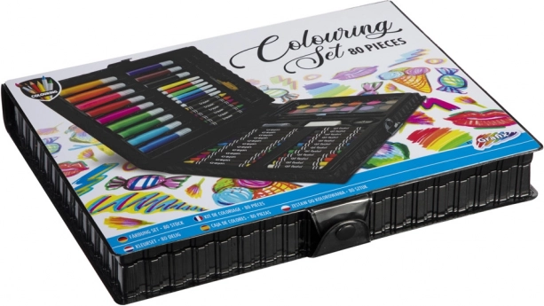 Zábavná a praktická sada na kreslení určená pro malé umělce. Obsahuje široký výběr různých výtvarných potřeb, perfektních pro rozvoj kreativity a výtvarné dovednosti.