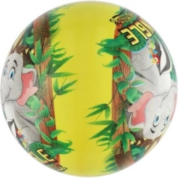 Míč má veselý design s džunglovým motivem, který zahrnuje kreslená zvířata jako slon, žirafa a zebra.