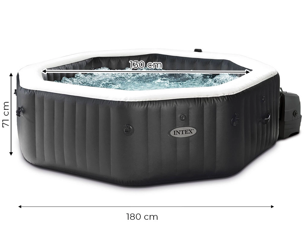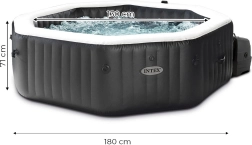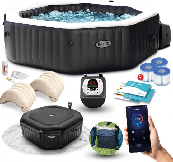 Nafukovací vířivka INTEX v elegantní černé barvě promění terasu, zahradu i interiér v soukromé lázně. Vnitřní průměr 150 cm pohodlně pojme až 4 osoby, zatímco 120 bublinek uvolní svalové napětí a zpříjemní každý večer. Díky rychlému ohřevu až na 40 °C si vychutnáte teplou lázeň bez zbytečného čekání.