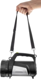 Boční panel poskytuje červené výstražné světlo ve dvou režimech (stálé/puls), které oceníte při nouzových situacích nebo označení místa. Integrovaný akumulátor 3,7 V / 8000 mAh zajišťuje 6–8 hodin provozu a přes USB poslouží jako powerbanka pro dobití telefonu či jiné elektroniky. Díky pohodlnému madlu a nastavitelnému popruhu se reflektor snadno nosí v ruce nebo přes rameno.