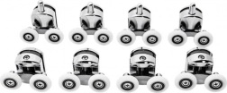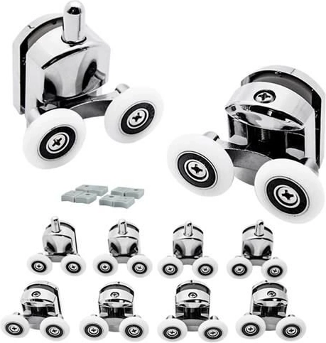 Jsou vhodné pro všechny sprchové kouty, které používají tento typ kuličkových ložisek. Válečky s kolečky se díky naklápěcí konstrukci přizpůsobí tvaru vedení. Hodí se jak do čtvercových, tak i do půlkruhových kabin.