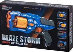 Různé detaily v podobě reliéfů a grafiky, díky nimž hračka připomíná zbraň z počítačové hry, ji činí atraktivní pro děti různého věku. Hračka potěší fanoušky počítačových her, kteří mohou své potyčky přenést do reálného světa a zároveň i běhat! Taková hra venku napomáhá motorické koordinaci a má pozitivní vliv na fyzické zdraví vašeho dítěte. Pistole vás povzbudí k aktivnímu trávení volného času venku. Blaze Storm je velká hračka, která vašemu dítěti poskytne hodiny zábavy. Navzdory své velikosti není těžká, takže její ovládání zůstává snadné a zábavné. Hračka poskytuje značnou výhodu nad soupeřem. Střílí nejen rychle a přesně, ale i na velkou vzdálenost. Pušky nevyžadují baterie. Stačí naplnit bubnový zásobník šipkami, nabít zbraň vytažením závěru zpět a vystřelit.