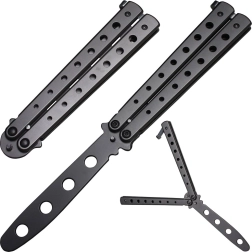 Objevte zábavný a bezpečný způsob, jak trénovat balisong triky. Tento motýlek má ztupenou čepel a pevnou nerezovou konstrukci, takže je vhodný pro každodenní nácvik bez rizika pořezání. Otevírá se a zavírá plynule jednoduchým pohybem zápěstí.