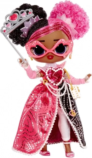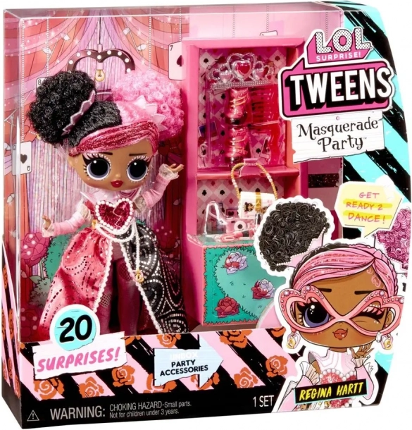 Panenka L.O.L. Surprise Tweens Regina Hartt přichází ve výrazném růžovo-černém stylu s perlami, srdíčky a třpytivými detaily. Je připravena zazářit na maškarním plese a potěší všechny milovnice módních doplňků, převleků a stylingu.