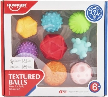 Objevte sadu osmi texturovaných míčků navržených pro rozvoj smyslového vnímání a koordinace dítěte. Různé barvy a textury zajišťují interaktivní a zábavnou hru.