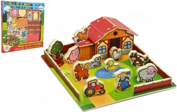Tato dřevěná farma je ideální pro malé děti od 3 let. Na dřevěné podložce o rozměru 31 x 31 cm lze farmu snadno sestavit, což vytváří perfektní domeček na hraní plný zvířátek. Skládá se z 28 dílků, které nabízejí nekonečné možnosti pro imaginativní hru.