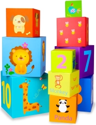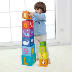 Tyto barevné bloky obsahují čísla, zvířátka a anglická slova, čímž pomáhají při učení a rozvoji kognitivních schopností.