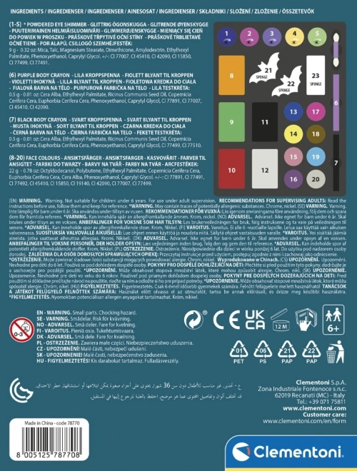 S touto sadou na malování na obličej od značky Clementoni si děti užijí spoustu zábavy a rozvíjí svou kreativitu. Otevřete krabičku a čeká na vás přehledně uspořádaná paleta se všemi nezbytnostmi pro bezpečné a hravé líčení.