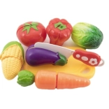 Tato barevná sada pro malé kuchaře nabízí realistický zážitek z vaření. Jednotlivé dílky ovoce a zeleniny jsou spojeny suchým zipem, takže je děti mohou opakovaně rozdělovat a skládat pomocí přiloženého nožíku. Odolné plastové provedení je lehké a bezpečné pro dětské hraní.