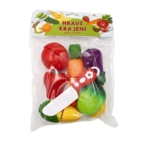 Zábavná dětská sada na hraní do kuchyňky obsahuje plastové prkénko, bezpečný nožík a zeleninu a ovoce na suchý zip, které lze opakovaně „krájet“. Skvělá volba pro rozvoj jemné motoriky, fantazie a rolových her u dětí od 3 let.