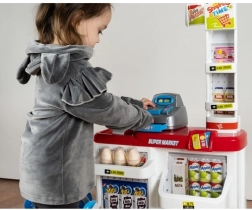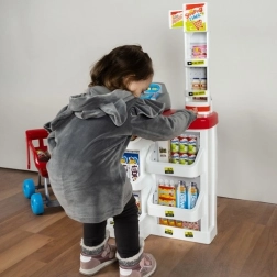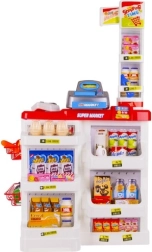 Dětský supermarket je ideální pro malé prodavače i zákazníky. Obsahuje funkční pokladnu s výsuvným šuplíkem, skener čárových kódů se zvukem, obchodní váhu, regály s výrobky a nákupní vozík. Díky bohaté výbavě děti trénují počty, komunikaci i samostatnost.