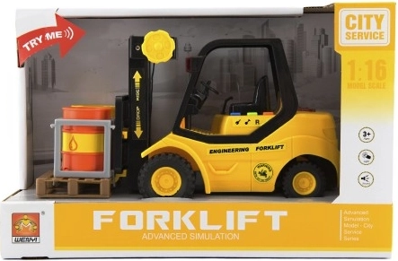 Vysokozdvižný vozík plast 23cm na setrvačník na bat. se zvukem se světlem v krabici 29x19x12cm