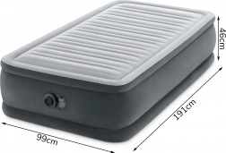 Komfortní nafukovací matrace pro 1 osobu s rozměry 191 × 99 × 46 cm nabízí stabilní oporu zad díky technologiím Fiber-Tech a Dura-Beam. Má integrovanou elektrickou pumpu pro rychlé nafouknutí a vyfouknutí, měkký semišový povrch pro pohodlí a nosnost až 136 kg. Ideální na doma i na cesty, v balení s praktickou přepravní taškou.