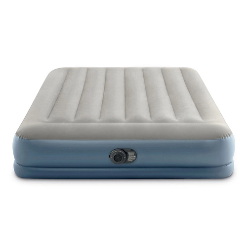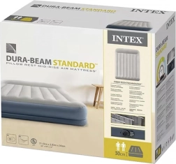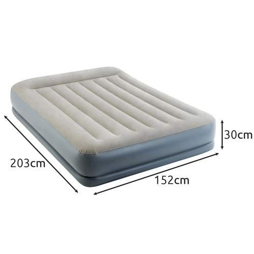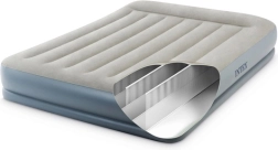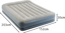 Nafukovací velurová postel INTEX Pillow Rest Mid-Rise, dvoulůžko s elektrickou pumpou 203 × 152 × 30 cm