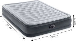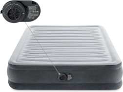 Nafukovací matrace INTEX je ideální jako pohodlné přistýlkové lůžko pro hosty i na kempování. Integrovaná pumpa na 220–240 V zajistí rychlé nafouknutí za cca 4,5 minuty i automatické vyfouknutí bez námahy. Velurový povrch je měkký na dotek, zatímco odolné PVC přináší vysokou životnost a snadnou údržbu.