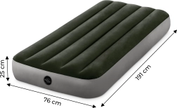 Užijte si pohodlí na cestách nebo doma s touto nafukovací matrací od značky Intex. S rozměry 191x76x25 cm je perfektní pro děti či jednotlivce na cestách, ať už v hotelu či na kempování. Vyrobena z odolného PVC a potažena příjemným voděodolným velurem.