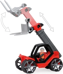 Tento teleskopický nakladač je vyroben z kvalitního plastu a nabízí pevnou konstrukci, která vydrží intenzivní hraní. Díky pogumovaným kolům s tichým chodem je ideální i pro hru v interiéru. Díky odklopitelné kabině s aktivním panáčkem si děti mohou snadno představit, že jsou skutečnými operátory stavebního vozidla.