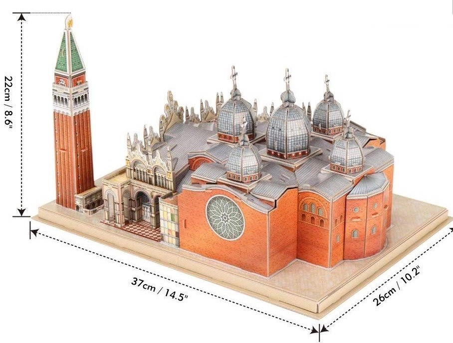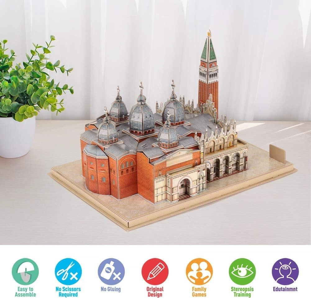 Objevte kouzlo Benátek díky detailní stavebnici Náměstí svatého Marka. 3D puzzle CUBICFUN z edice National Geographic je vyrobené ze speciální vícevrstvé pěny potažené laminovaným potištěným papírem, který zajišťuje krásné barvy a dlouhou životnost. Díly jsou předražené – stačí je jednoduše vylomit a dle návodu složit.