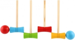 Užijte si veselé odpoledne s dřevěným kroketem, který rozvíjí koordinaci a přesnost. Rozmístěte branky dle přiloženého návodu a pomocí paliček dostaňte míček skrz všechny branky.