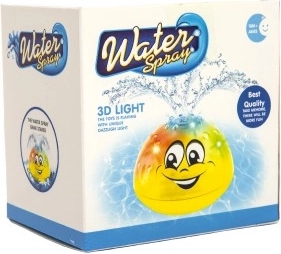 Hračka do vody stříkací plast 10cm žlutá na baterie se světlem v krabičce 10x10x8cm